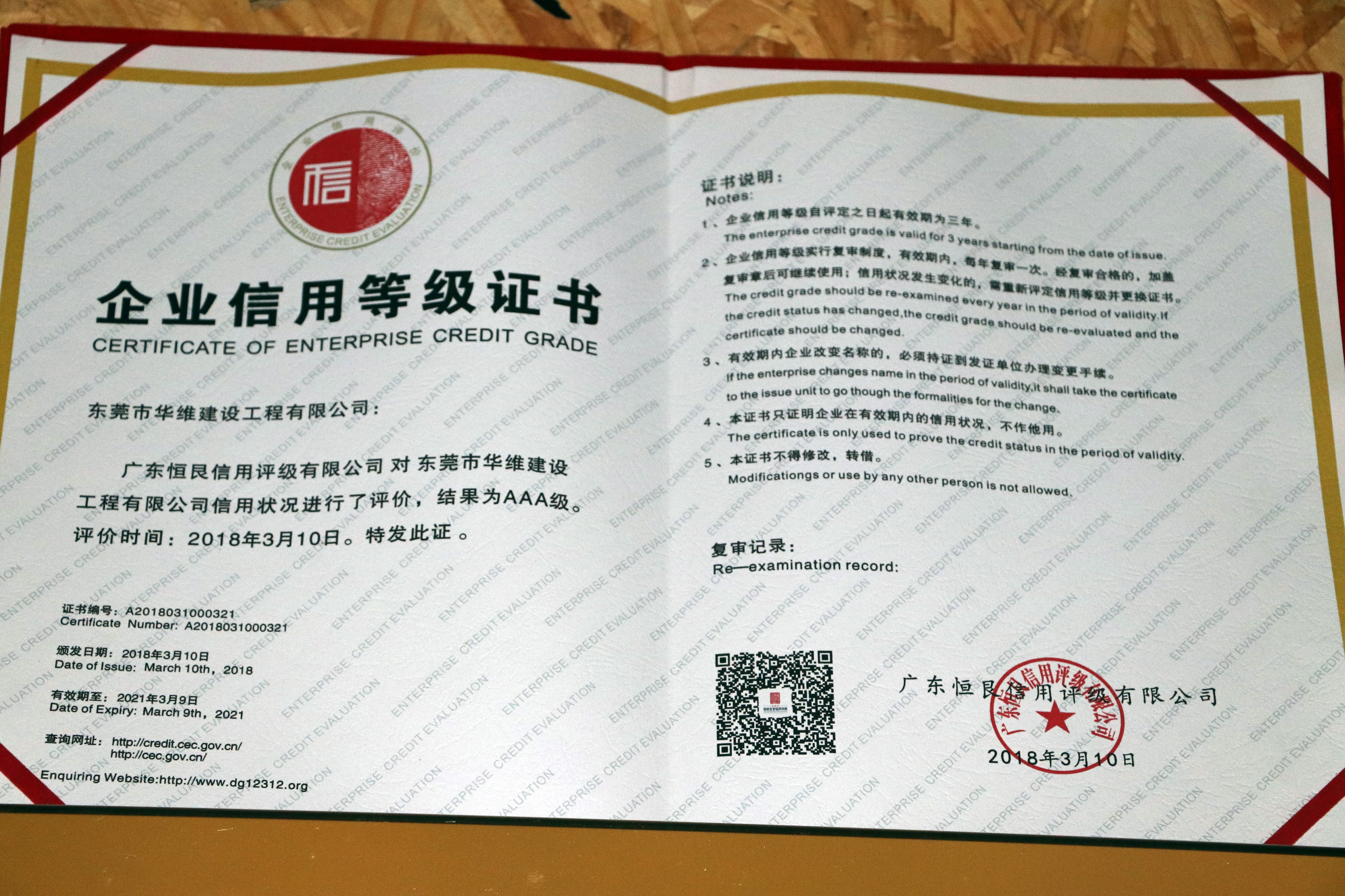 • 2018年企業信用等級證書